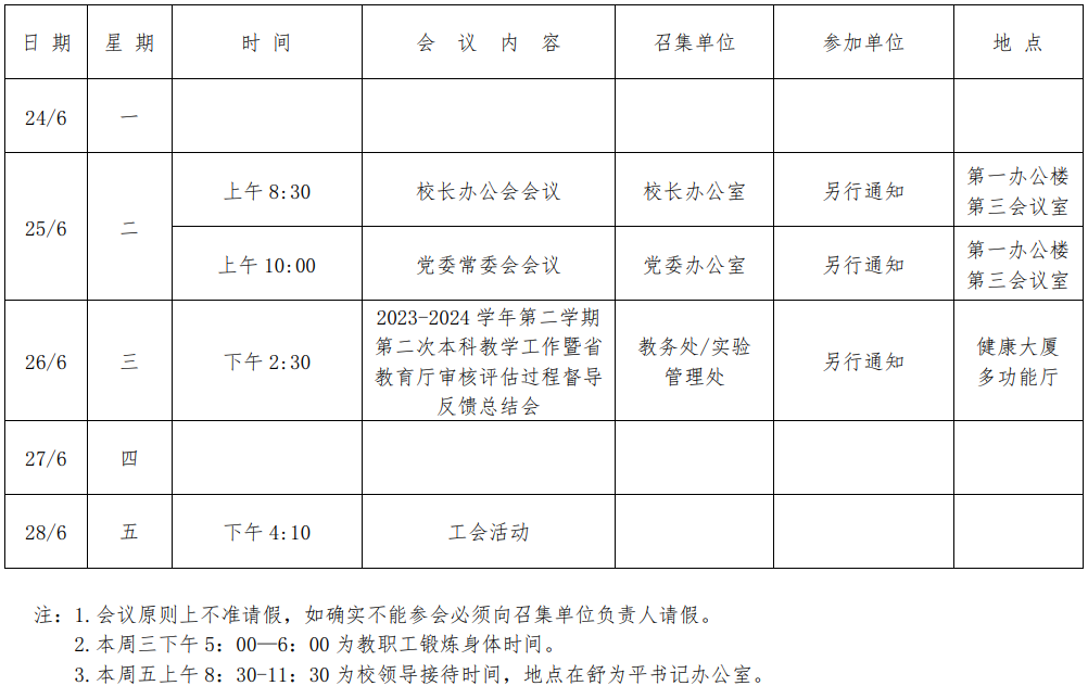第五周会议安排