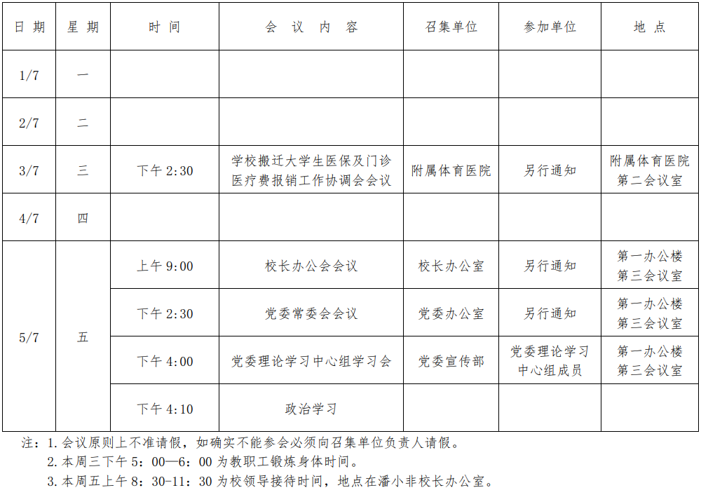 第五周会议安排
