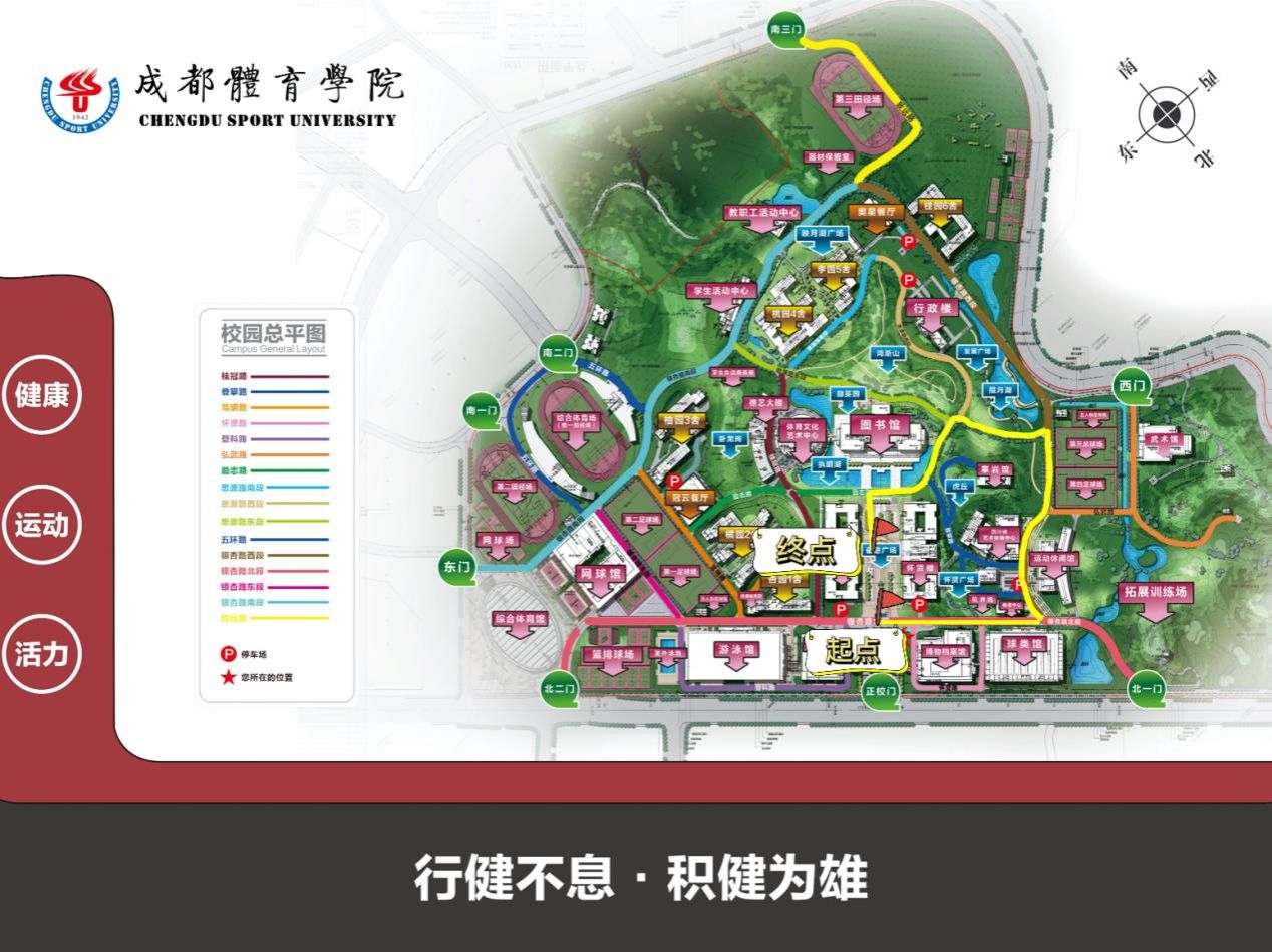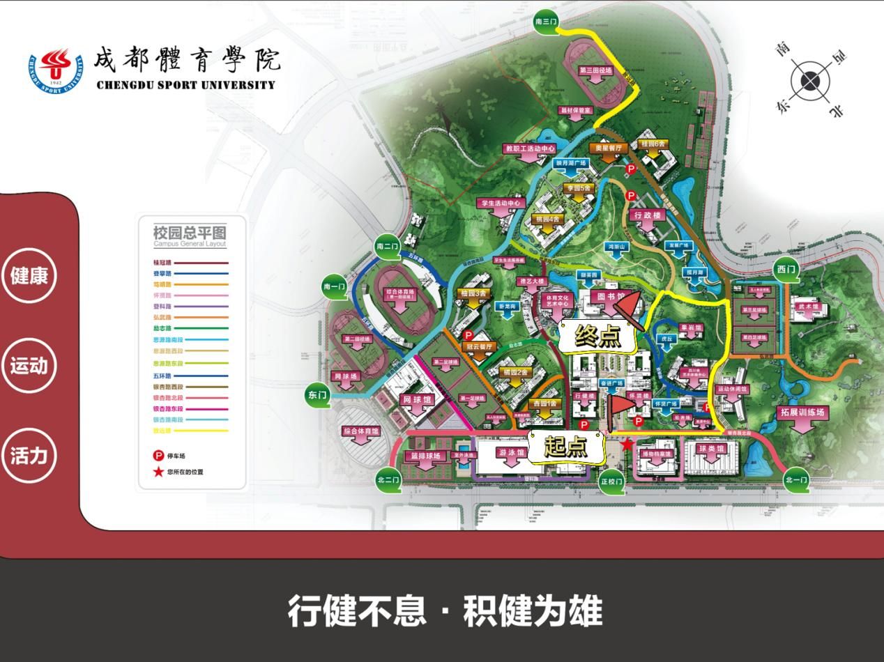 2.sunbet集团中国官网入口奋进广场银杏路北段喷水池处东侧斑马线处(起点)-银杏路北段与银杏路西段交界处-银杏路西段-银杏路西段与励志路交界处-励志路-奋进广场行建楼侧小道-sunbet集团中国官网入口奋进广场雕像处