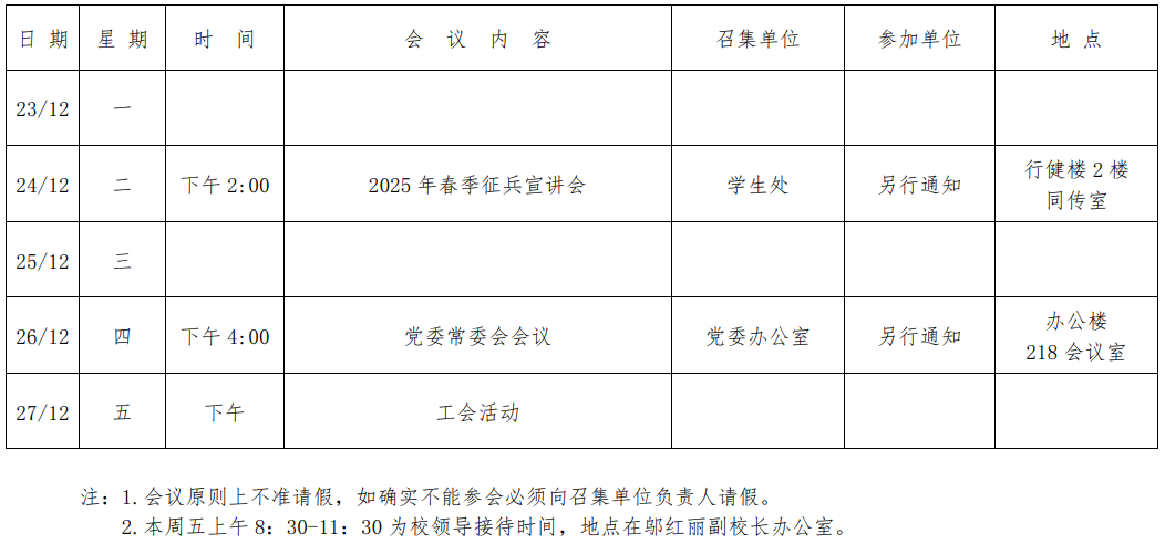 第十七周会议安排