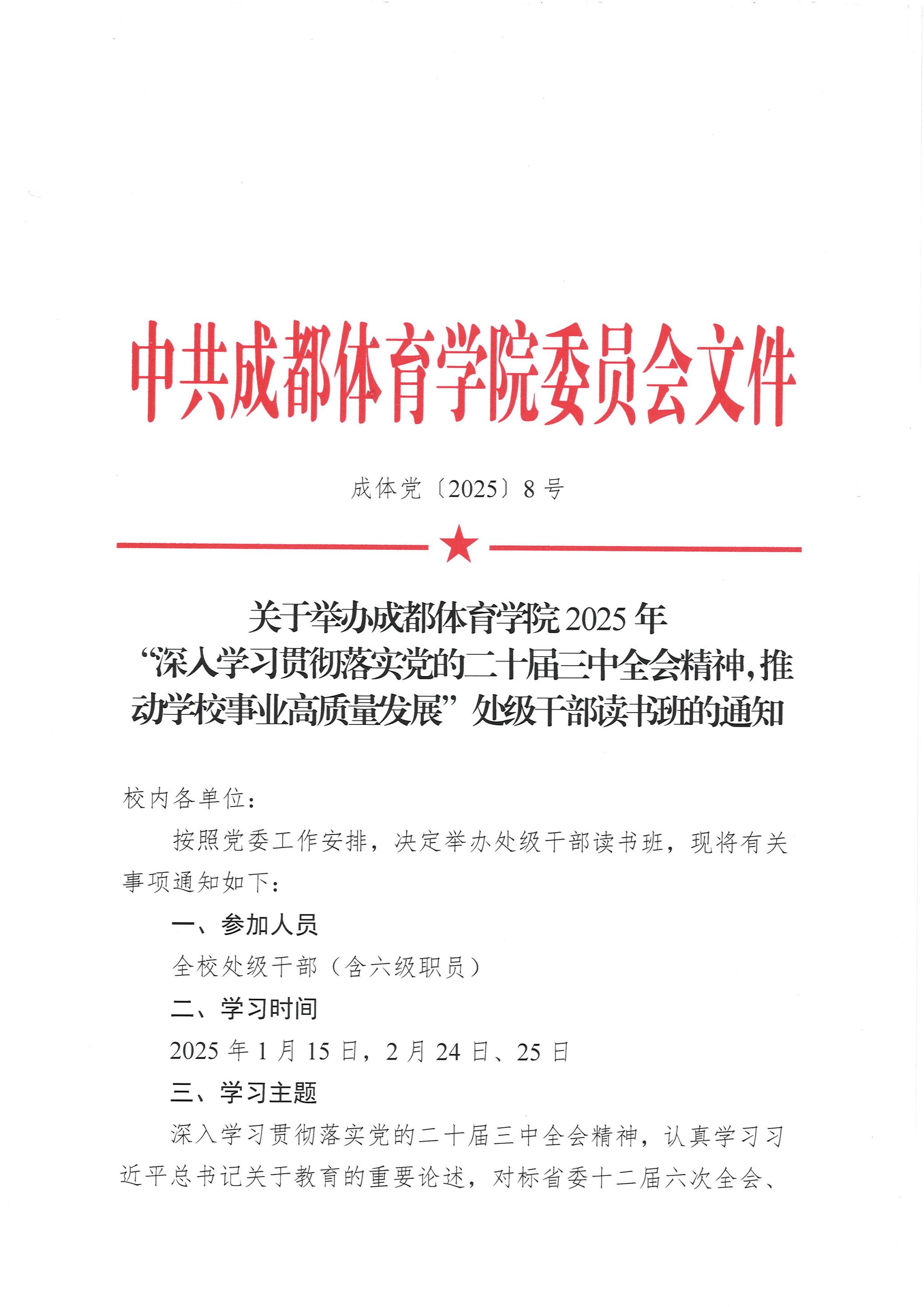 关于举办sunbet集团中国官网入口2025年“深入学习贯彻落实党的二十届三中全会精神,推动学校事业高质量发展”处级干部读书班的通知