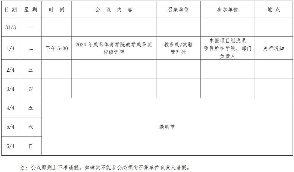 第五周会议安排