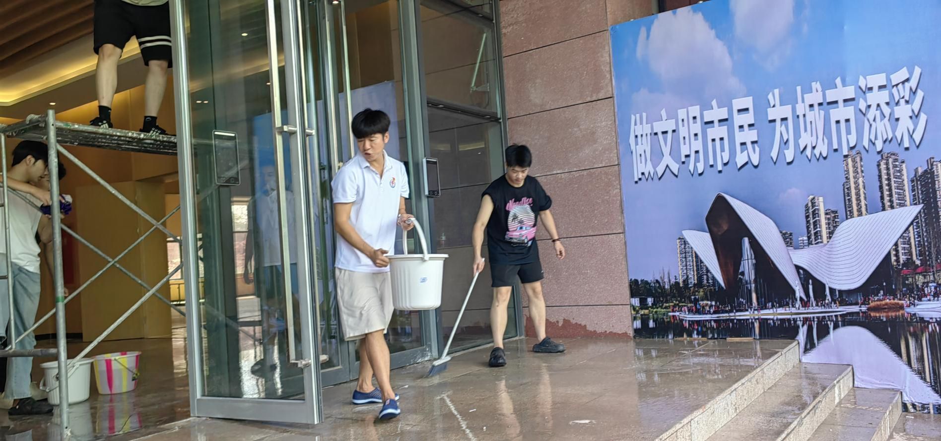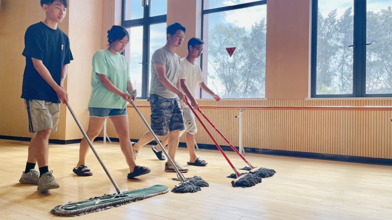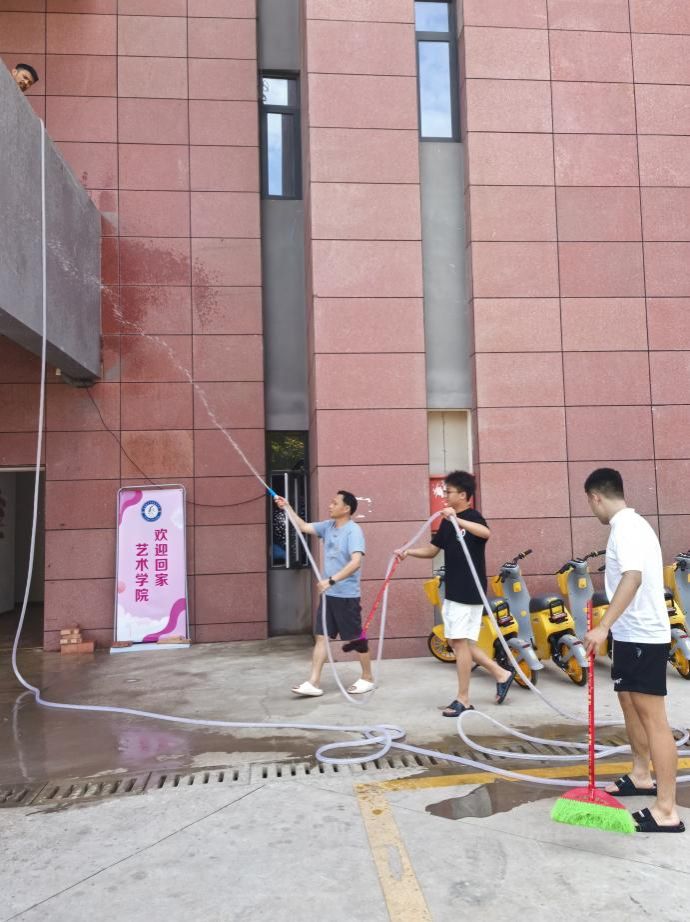 随着“我爱我家 ‘艺’起劳动”的口号声响起,大家手拿抹布、拖布、扫把等清洁工具,迅速分散到指定的清洁区域,认真专注的将一间间舞蹈房、一间间琴房、一间间办公室、一个个台阶、一根根把杆、一条条过道打扫得干干净净,师生们看着自己的劳动成果,汗水下是成就感满满的笑容。