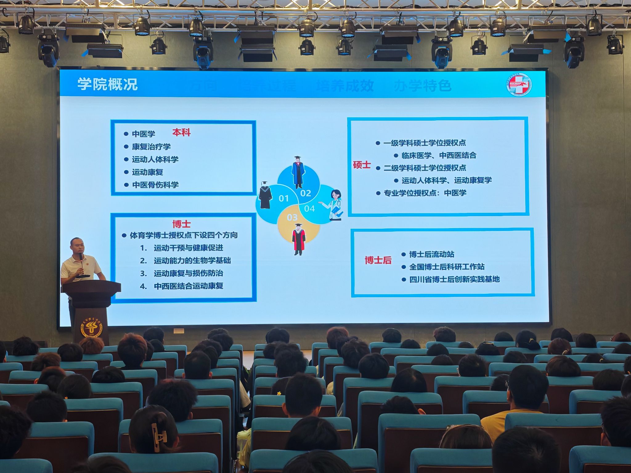 运动生物力学教研室主任刘国辉从奥运会科医保障和专业建设的角度出发,详细阐述了运动医学与健康学院的发展历程、专业特色以及未来的发展趋势。他通过生动的案例和丰富的数据,让新生们对学院的专业实力有了更加直观的认识和了解。中医运动医学教研室朱宇晨、李伦宇两位老师针对课程设置和实习实践进行了深入的讲解,并分享了自己在实习实践中的经验和感悟,鼓励新生们要积极参与实践活动,提升自己的专业技能和实践能力。