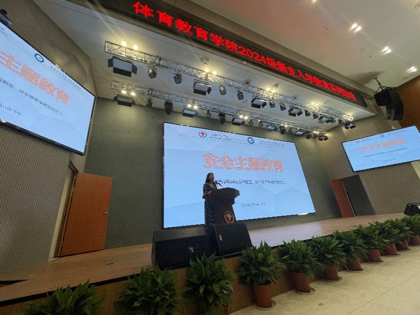 会上,学管办副主任杨青卿老师对2024级本科新生的到来表示热烈欢迎。她以安全教育作为开学第一课,结合《学生守则》从身份意识、集体意识、责任意识、安全意识等多个维度,对新生进行了全面的安全入学教育。她着重强调了大学生活中自律与规划对未来发展的重要性,希望大家养成高度的自主和自律意识;鼓励新生尽早确立学习目标,充分利用学校各类场馆资源,全身心投入到文化学习和专项技术能力提升,积极参与课外实践活动和社会服务,拓展视野,提高综合素质,以积极的心态迎接大学生活的挑战。