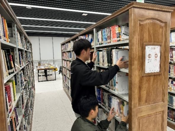 活动伊始,大家满怀热忱,提前集结于图书馆门前。在图书馆老师的悉心指导下,他们迅速掌握了图书排架的基本知识与技巧,学会了如何精准地将每一本书籍归位,并巧妙地利用书笠保持书籍的整洁与有序。随后,大家自发组成三支小队,分工合作,有条不紊地投入到图书整理工作中。他们穿梭于书架间,将散落的书籍一一归位,确保每一本书都能找到属于自己的“家”,为图书馆增添了几分温馨与雅致。