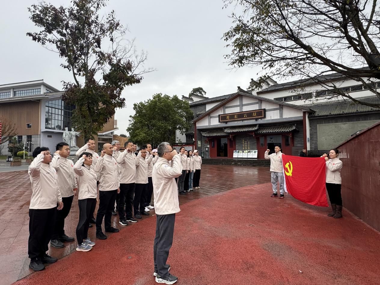 本次学习分两个阶段进行。第一阶段为红色文化实地参观学习。学院党员骨干队伍参观了战旗村初心馆、党群服务中心、精彩战旗、村史馆等红色文化教育点,实地感受到战旗村的创新精神与建设成效。参观结束后全体党员一同重温入党誓词宣誓。