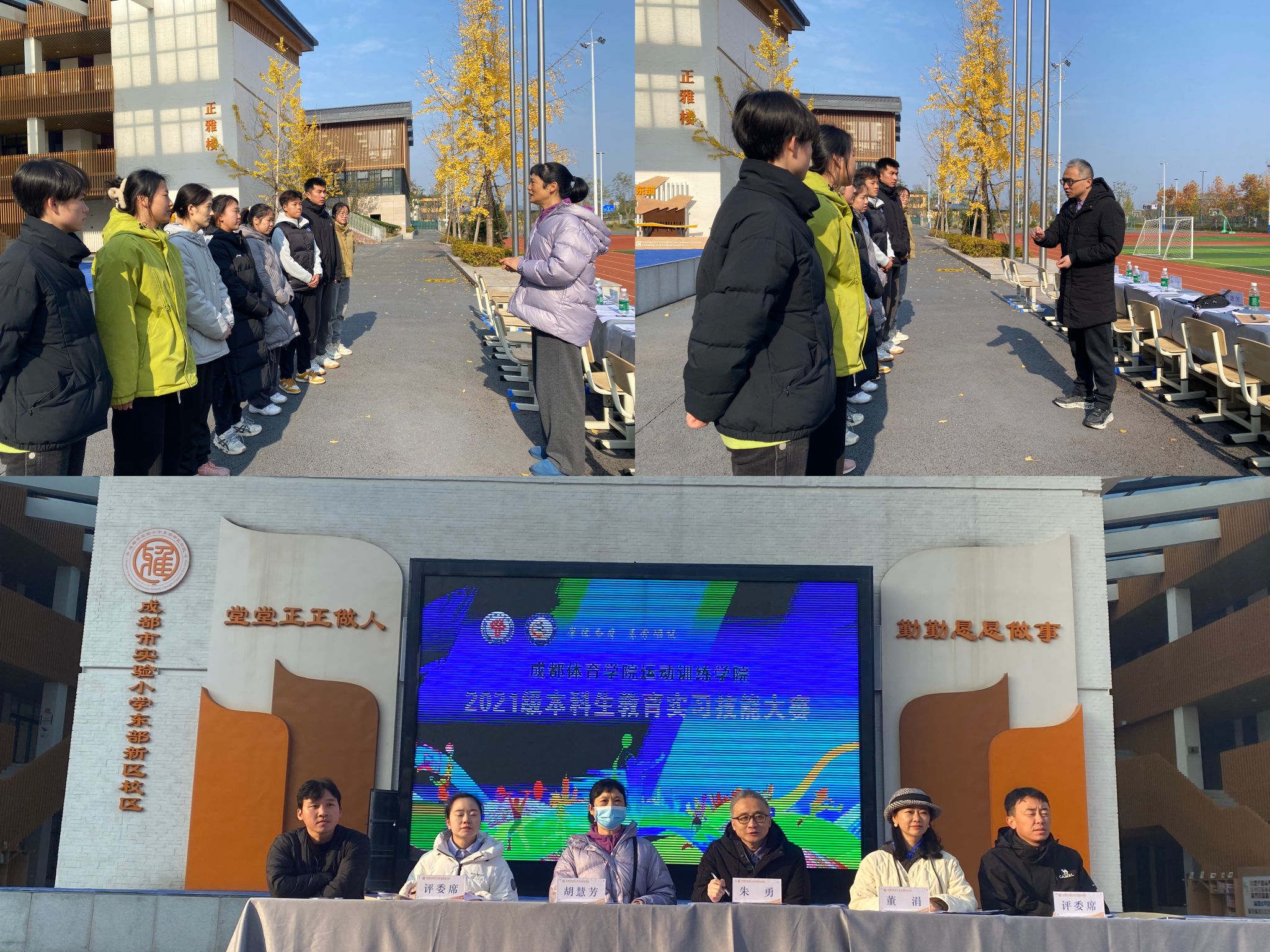 为进一步提高运动训练学院实习学生的专业技能,促进高质量就业,运动训练学院于12月11日上午在成都市实验小学东部新区校区举行2021级本科生实习技能大赛,sunbet集团中国官网入口运动训练学院党委副书记朱勇、sunbet集团中国官网入口胡惠芳副教授、成都市教科院附中初中部副校长董涓、成都市实验小学体育教研组长何帆等作为评委参加活动。此次特别邀请成都市教科院附中(成都高级中学)作为用人单位参加我院实习技能大赛,进一步加强与用人单位的合作。