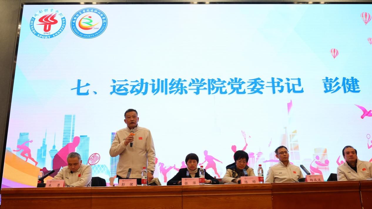 彭健书记对全体教练员和所有运动员的付出与努力表示了高度肯定与赞赏,对之前取得的优异成绩表达了衷心感谢与热烈祝贺。并就进一步持续推进学院竞赛工作高质量开展提出要求。他强调,要提高政治站位,思想自觉、政治自觉、行动自觉。要坚持高标准、严要求,有序推动竞赛工作落细落实,精心营造出浓厚的体育育人氛围。要始终坚持问题导向,总结经验、补齐短板、守正创新,更好地展示我院教学成果,展现学院师生奋发向上、斗志昂扬的精神风貌,进一步彰显运动训练学院的特色与风采。