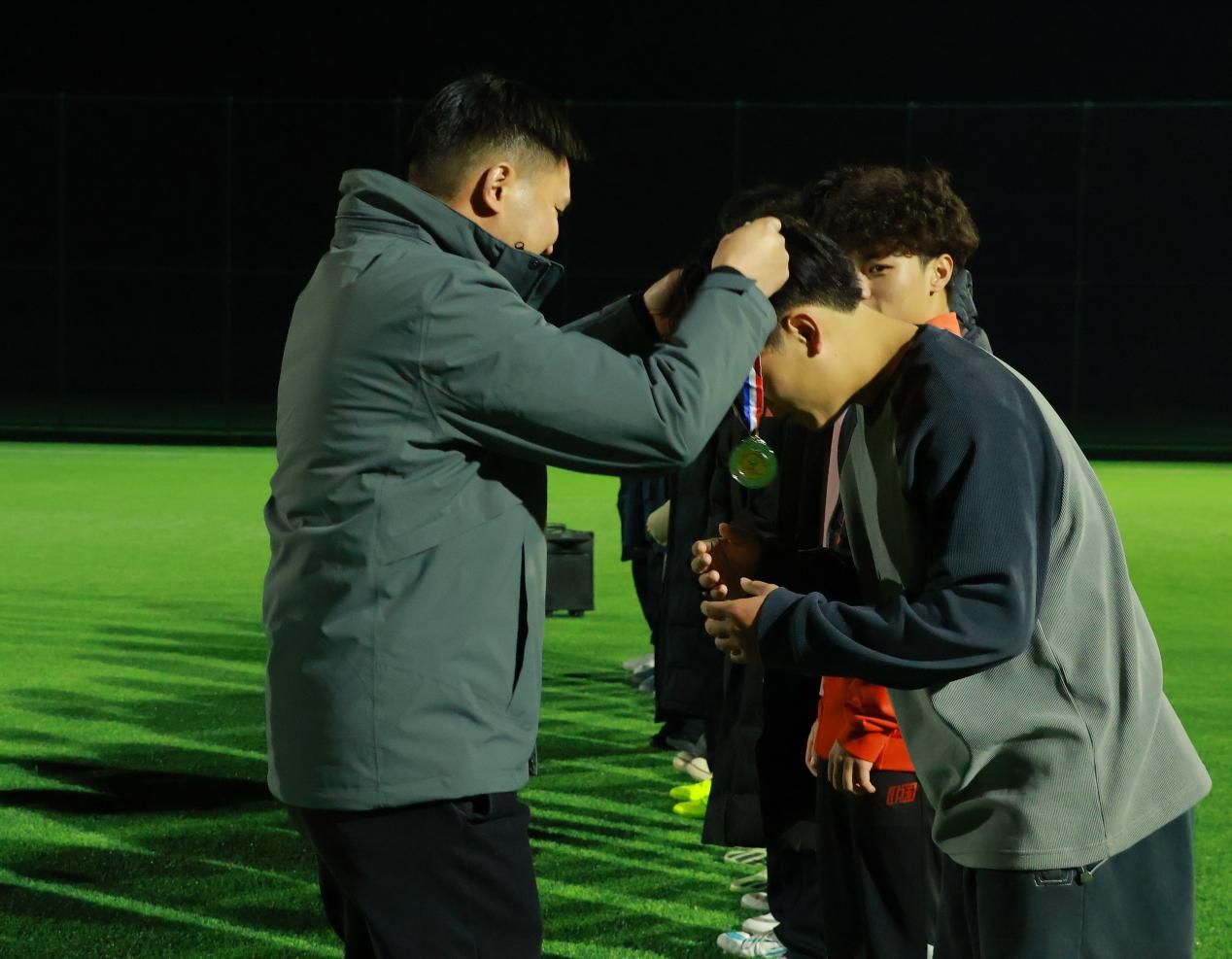 随后,刘洪源老师宣布获奖班级:冠军、亚军、季军,分别是:24级民传2班、23级民传2班、22级民传2班。学院各位领导分别为荣获冠军、亚军、季军的班级颁奖。最后,武术学院的师生们用相机在足球场上永久定格了这一激动人心的夜晚。