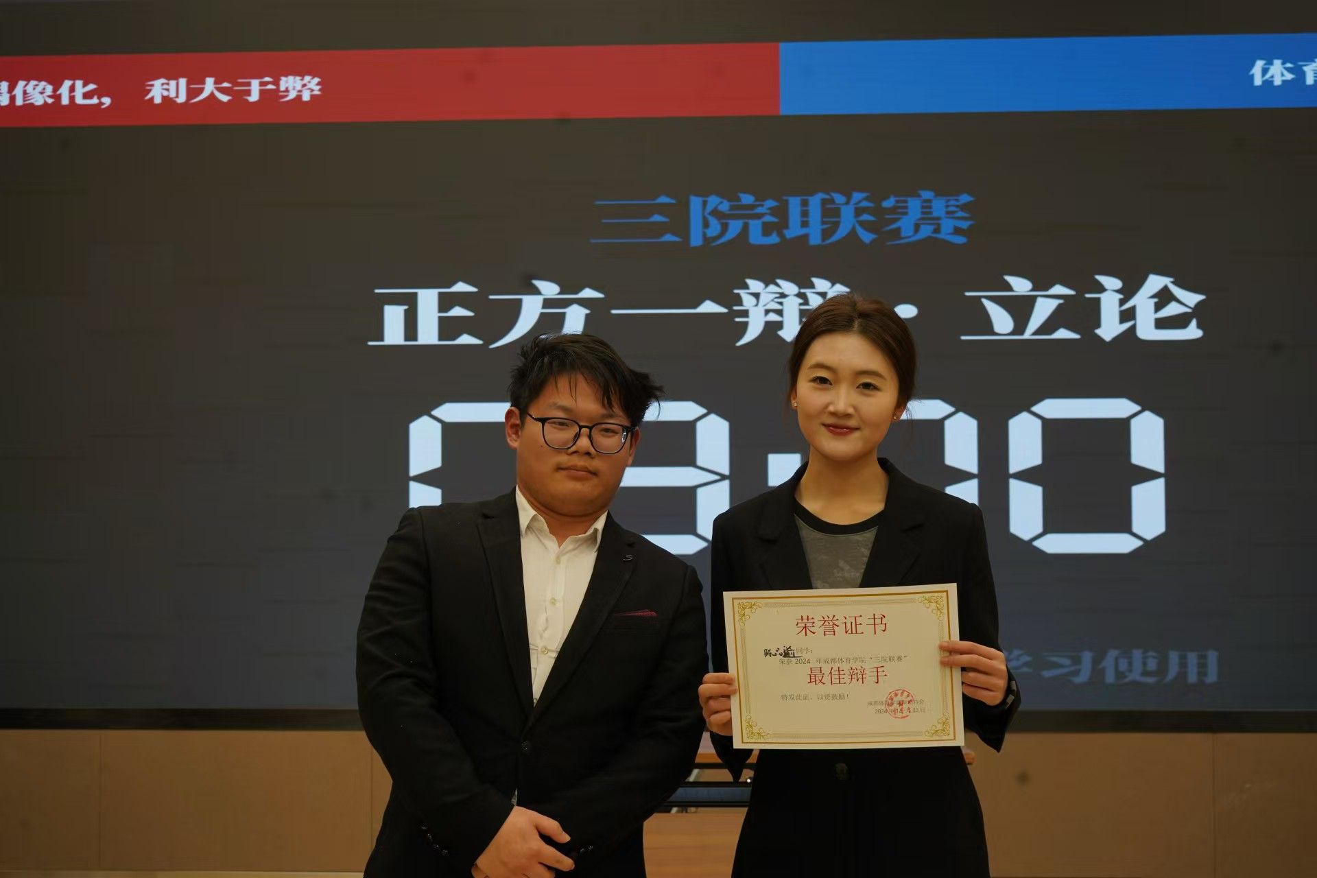 新闻与传播学院派出两支队伍,分别迎战经济管理学院和运动医学与健康学院辩论队。四支队伍分别围绕“体育明星偶像化,利大于弊还是弊大于利”和“离婚类综艺节目对年轻人价值观的塑造,利大于弊还是弊大于利”两个辩题展开辩论。新传辩论队队长莫俊贤、经管学院辩论队队长李岳桦、校辩论协会会长吴嘉玲担任辩论赛评委。