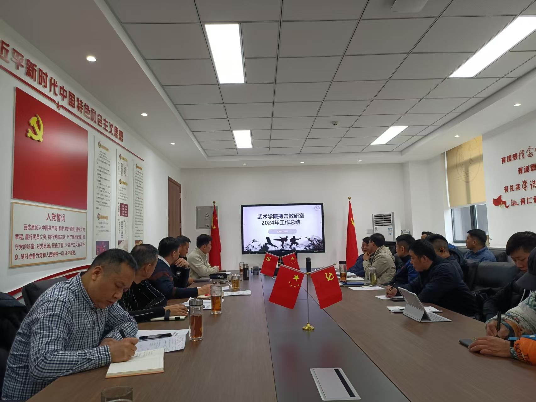 1月14日,武术学院在武术馆会议室召开2024年度工作总结会。武术学院院长赵斌、党委书记罗兴山、副院长李传国及全体教师参会。会议由罗兴山主持。