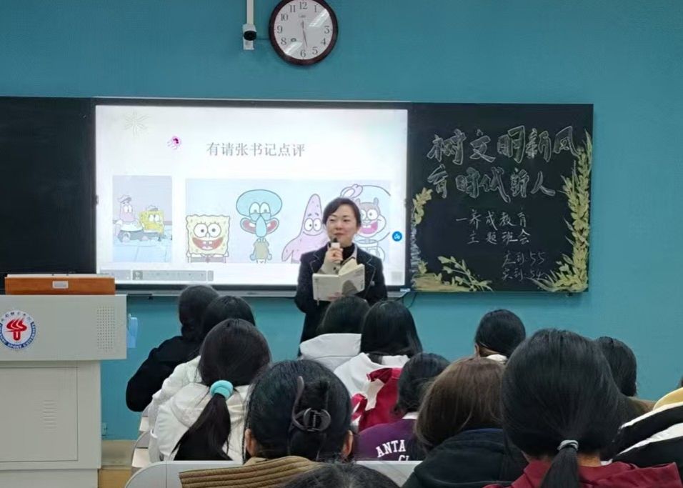 张玲玲在2024级1班班会上与同学们进行了深入交流,她强调养成教育是学校德育的关键,关乎学生成长与未来。认为本次班会学习内容扎实,学习形式多样,进一步加深了师生共建文明校园的意识和强化文明安全观念,她呼吁同学们将所学落实到行动,继续保持文明行为,做文明新风的推动者和时代新人的表率。