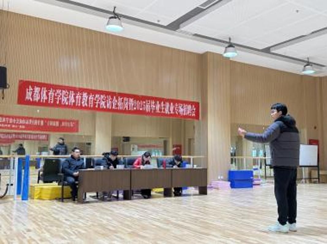 3月6日,成都市新都区北星小学曾祥琼校长一行受邀到体育教育学院开展专场招聘会。体育教育学院党委副书记杨彪、本科生第四学管办全体教师及50余名相关专项毕业年级同学参加招聘会。