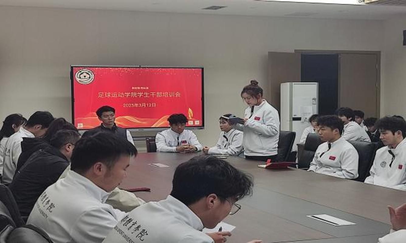 为提升我院学生会干部工作能力,进一步明确本学期学生工作方向,3月12日晚,足球运动学院开展学生会干部培训会。学院党委书记何培林、学管办乔紫微、周芸兴、全体学生会同学和班委参加此次培训。